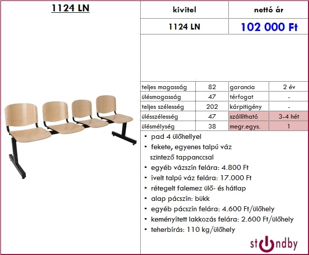 – keményített lakkozás felára: 3.470 Ft/ülőhely