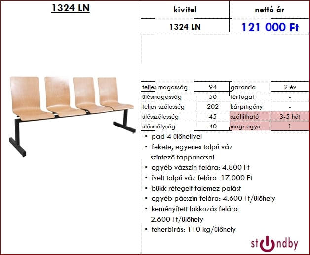 – keményített lakkozás felára: 3.470 Ft/ülőhely