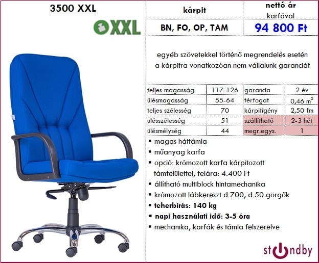– opció: krómozott karfa kárpitozott támfelülettel, felára: 4.400 Ft