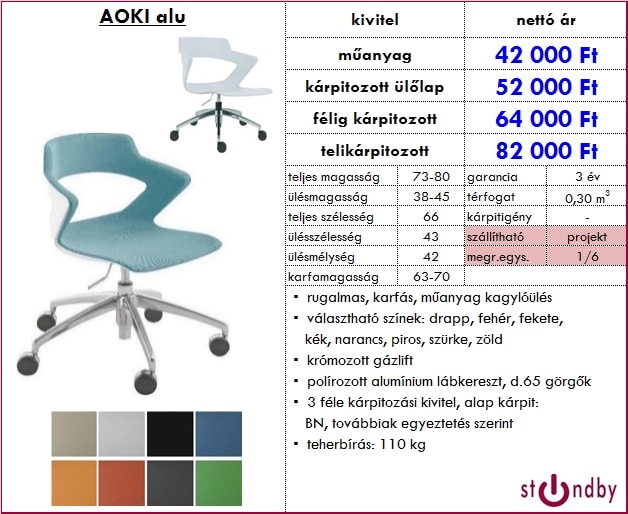 – polírozott alumínium lábkereszt, d.65 görgők
