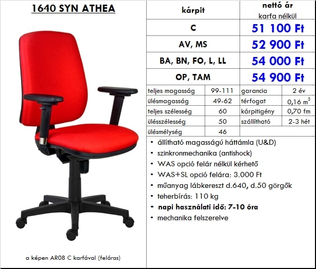 – állítható magasságú háttámla (U&D)