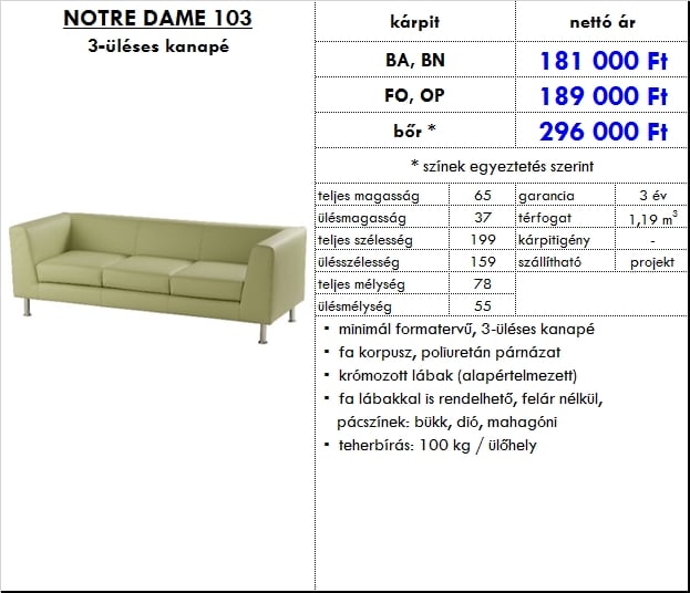 – minimál formatervű, 3-üléses kanapé