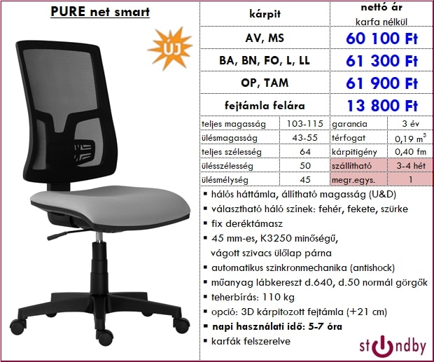 – hálós háttámla, állítható magasság (U&D)