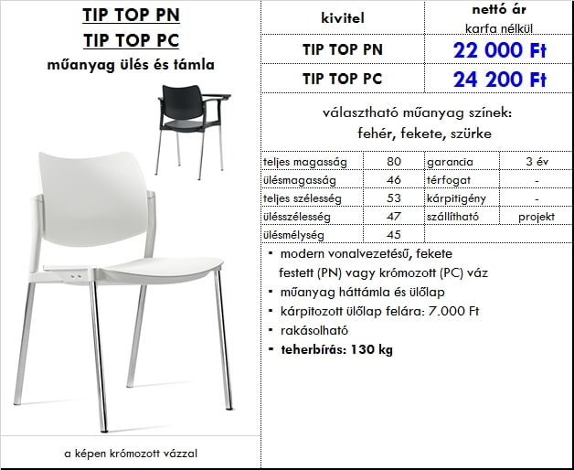 – műanyag háttámla és ülőlap
