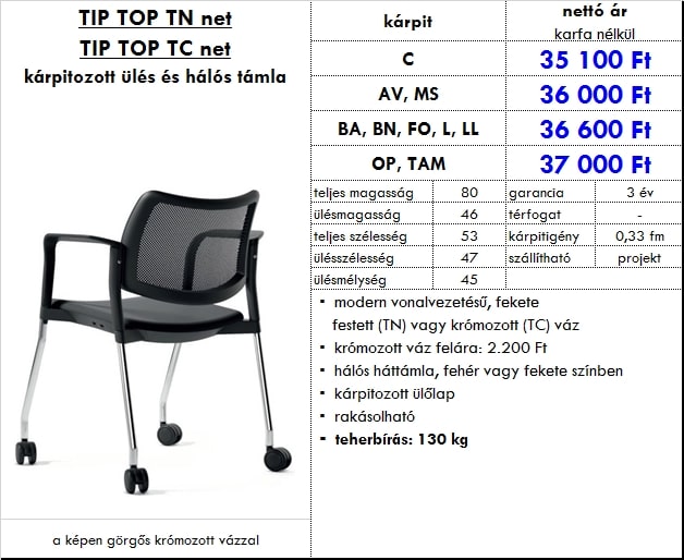 – hálós háttámla, fehér vagy fekete színben