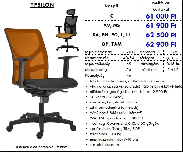 – fekete hálós háttámla, állítható deréktámasz