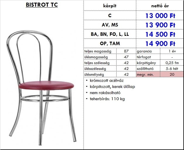 – kárpitozott, kerek ülőlap