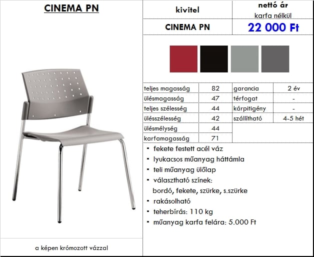 – műanyag karfa felára: 8.670 Ft