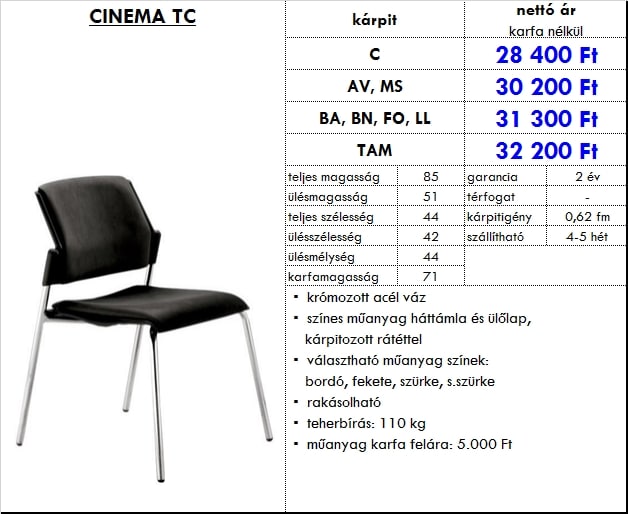 – műanyag karfa felára: 6.825 Ft