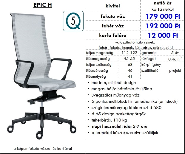 – magas, hálós háttámla és ülőlap