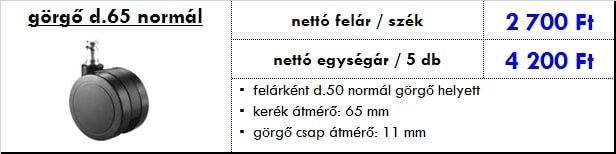 – kerék átmérő: 65 mm
