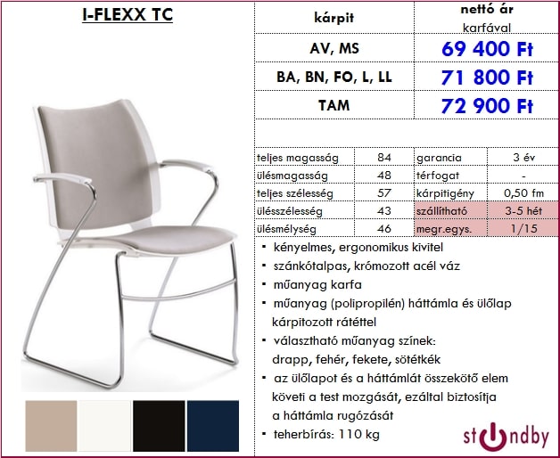 – műanyag (polipropilén) háttámla és ülőlap kárpitozott rátéttel