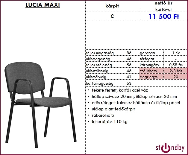 – hátlap szivacs: 20 mm, ülőlap szivacs: 20 mm