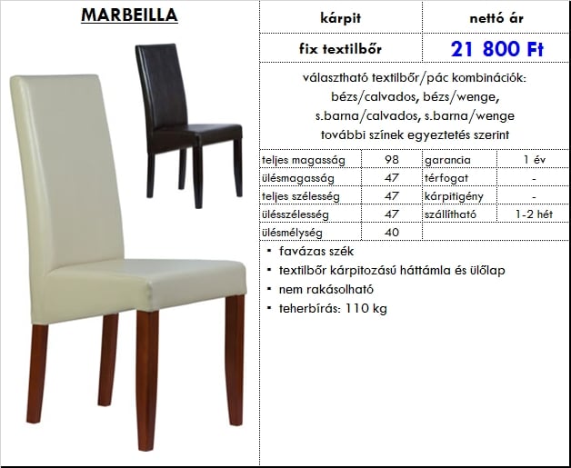 – textilbőr kárpitozású háttámla és ülőlap