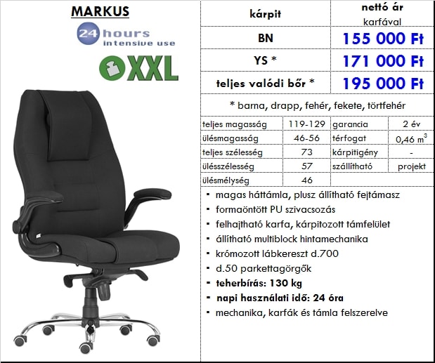 ▪ szegmens: ergonomikus, főnöki szék, XXL – nagy teherbírás, 24h intenzív, üzemi