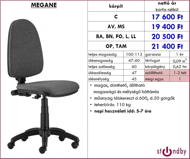 – magas, dönthető, állítható magasságú és mélységű háttámla