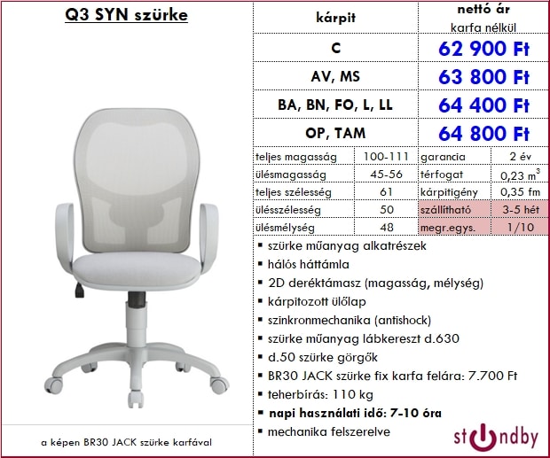 – BR30 JACK szürke fix karfa felára: 7.700 Ft