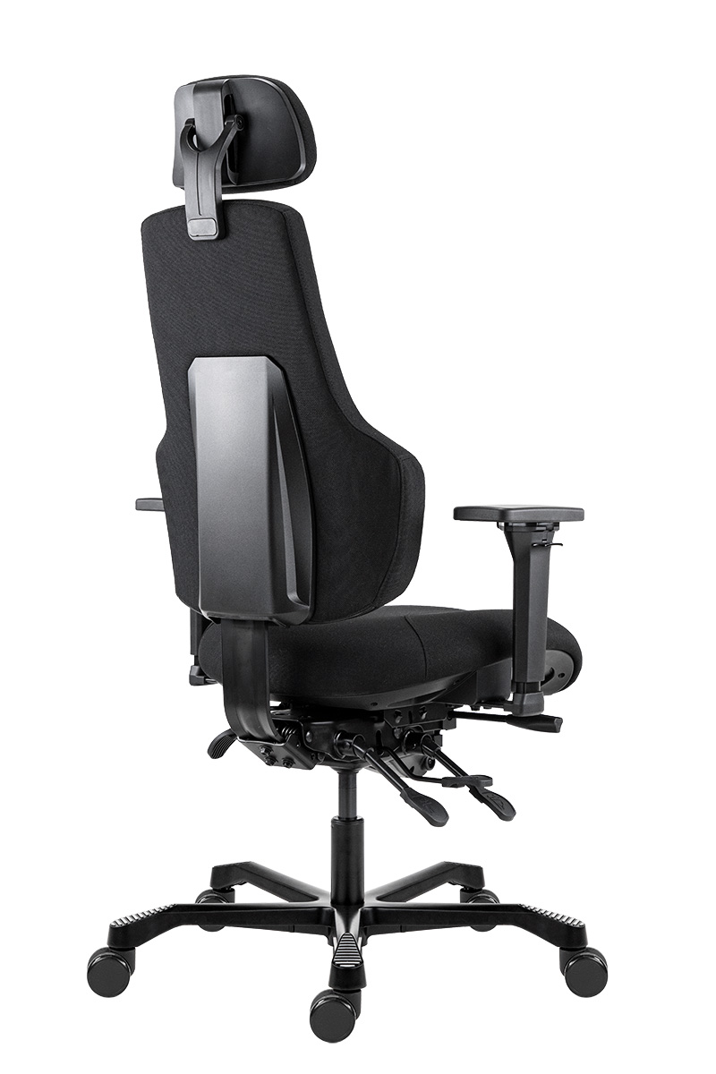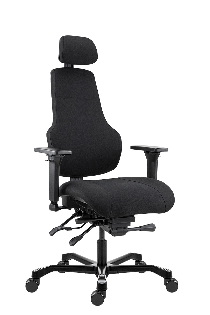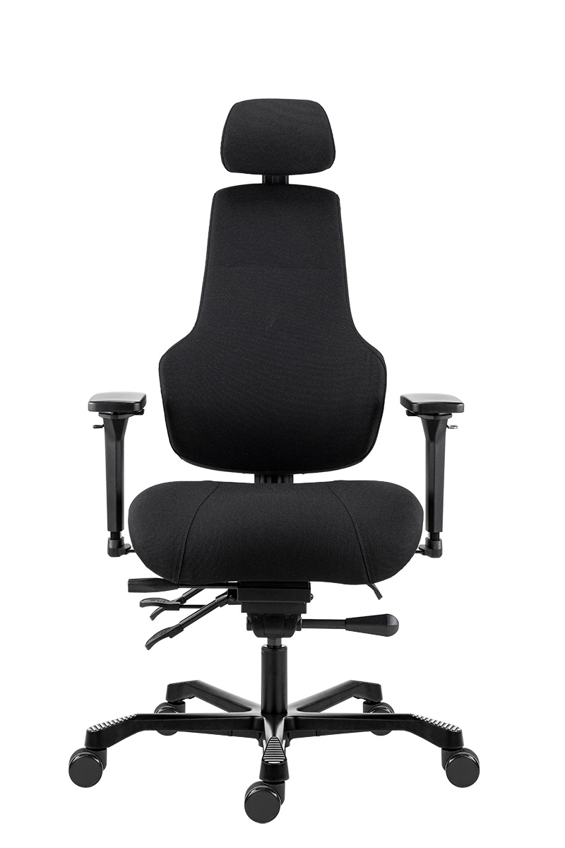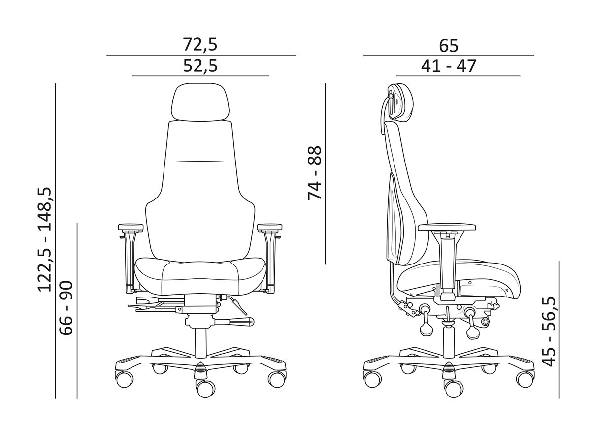| ▪ állítható magasságú kárpitozott háttámla ▪ állítható magasságú kárpitozott fejtámla ▪ állítható dőlésszögű kárpitozott ülőlap ▪ 4D karfa: magasság, szélesség, forgatható, előre-hátra ▪ állítható ülésmélység ▪ aszinkron mechanika, zárható hintamechanikává ▪ fekete festett fém lábkereszt d.700, d.60 parkettagörgők ▪ teherbírás: 200 kg ▪ napi használati idő: 24 óra |