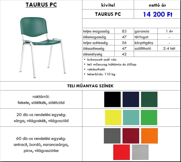 – teli műanyag háttámla és ülőlap
