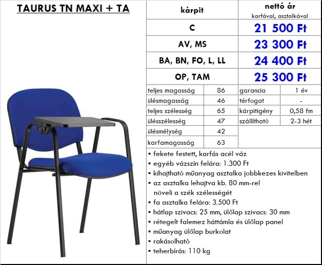 – az asztalka lehajtva kb. 80 mm-rel növeli a szék szélességét