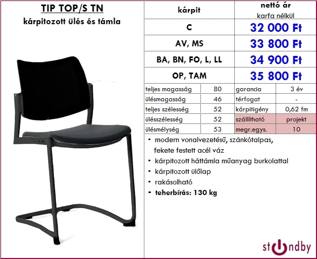 – kárpitozott háttámla műanyag burkolattal