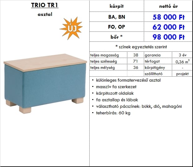 – különleges formatervezésű asztal